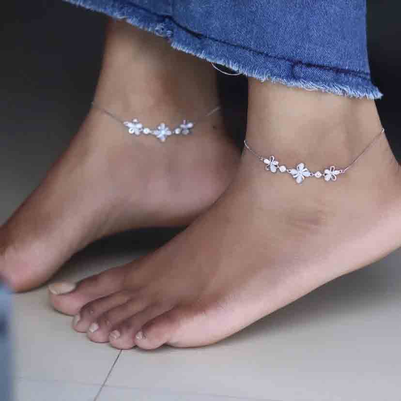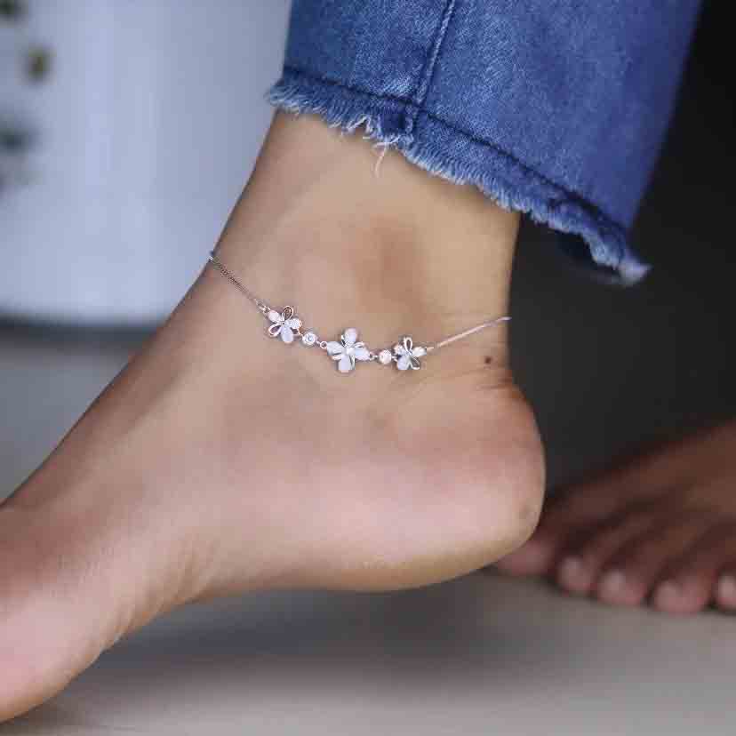 Blossom Silver Flower Payal for Women
