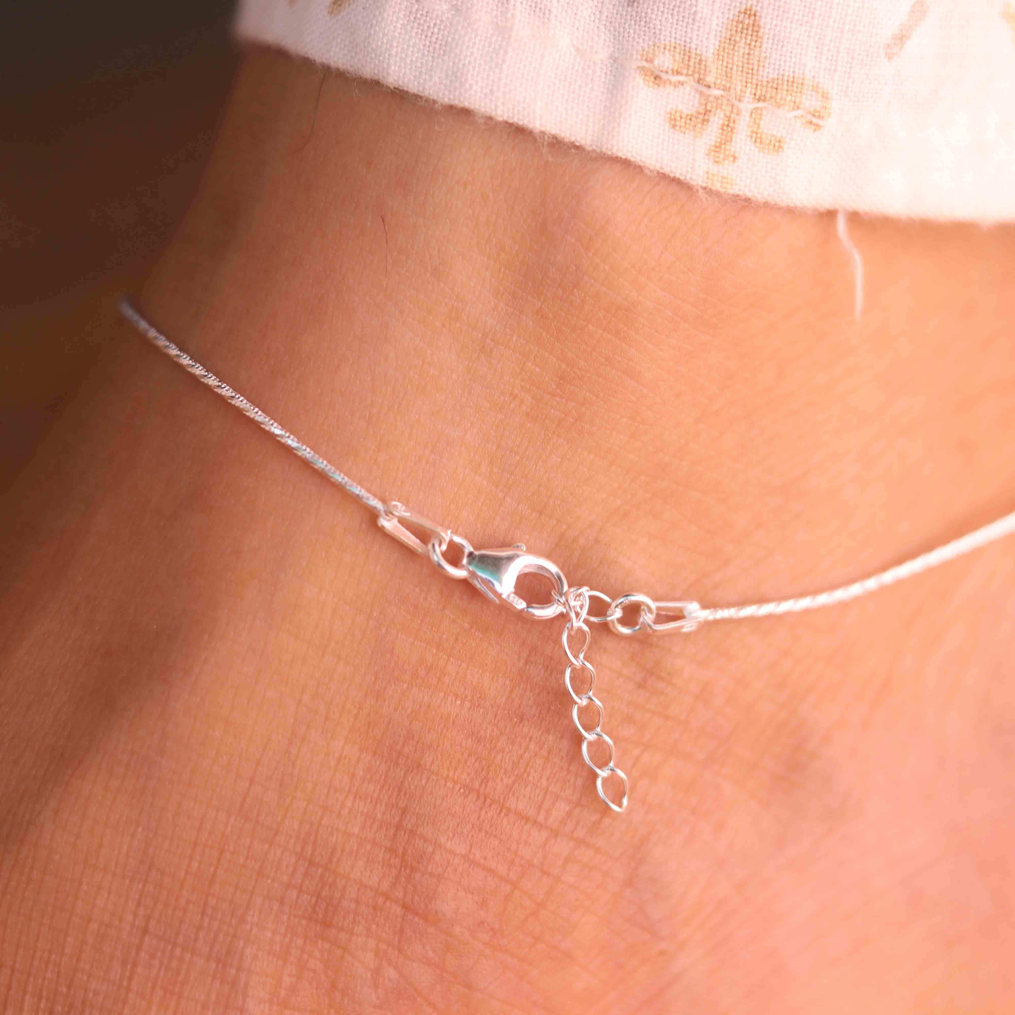 Step into understated luxury with DIA CHARMS ® pure silver Anklet collection – designed to move with you, shine for you, and stay with you.