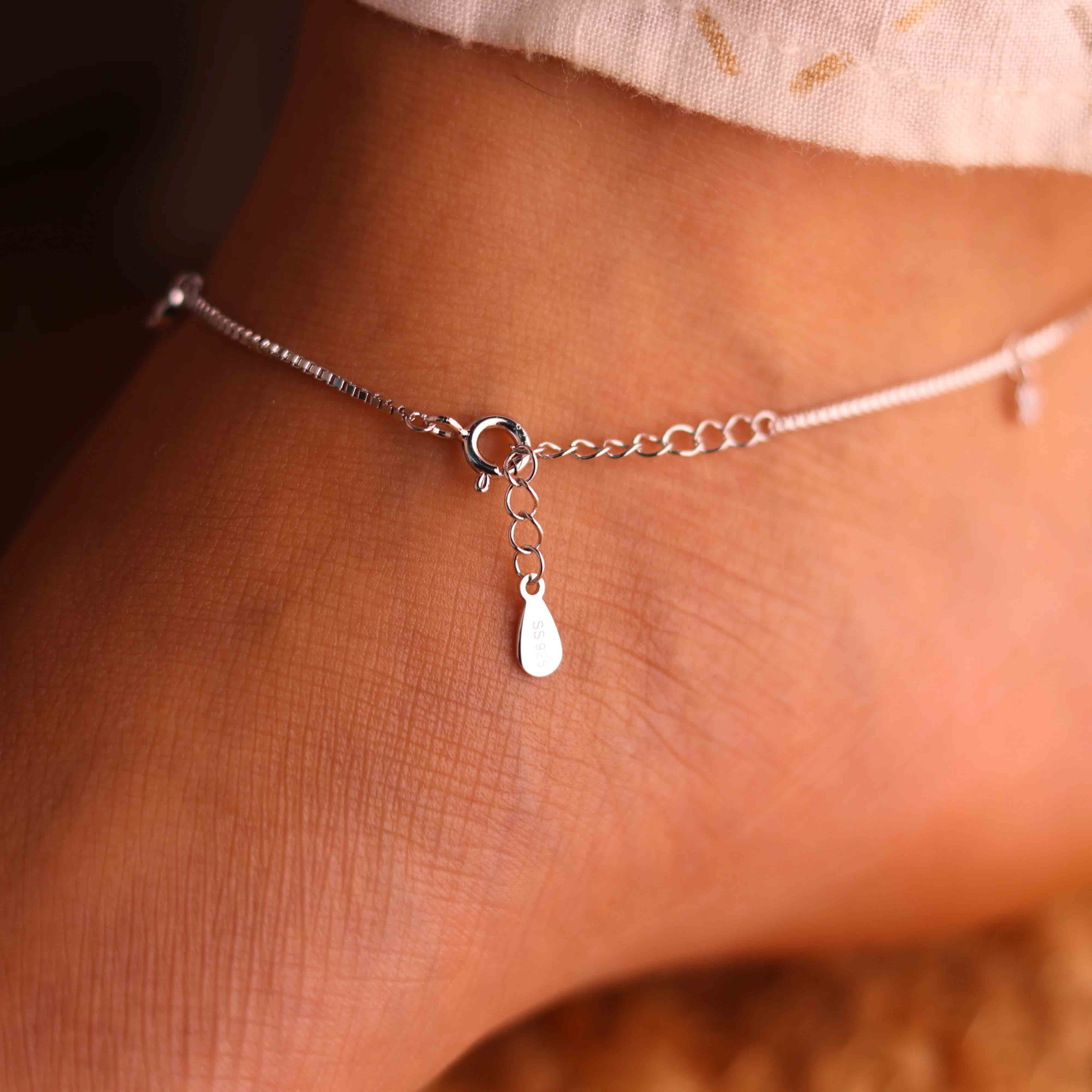 Step into understated luxury with DIA CHARMS ® pure silver Anklet collection – designed to move with you, shine for you, and stay with you.