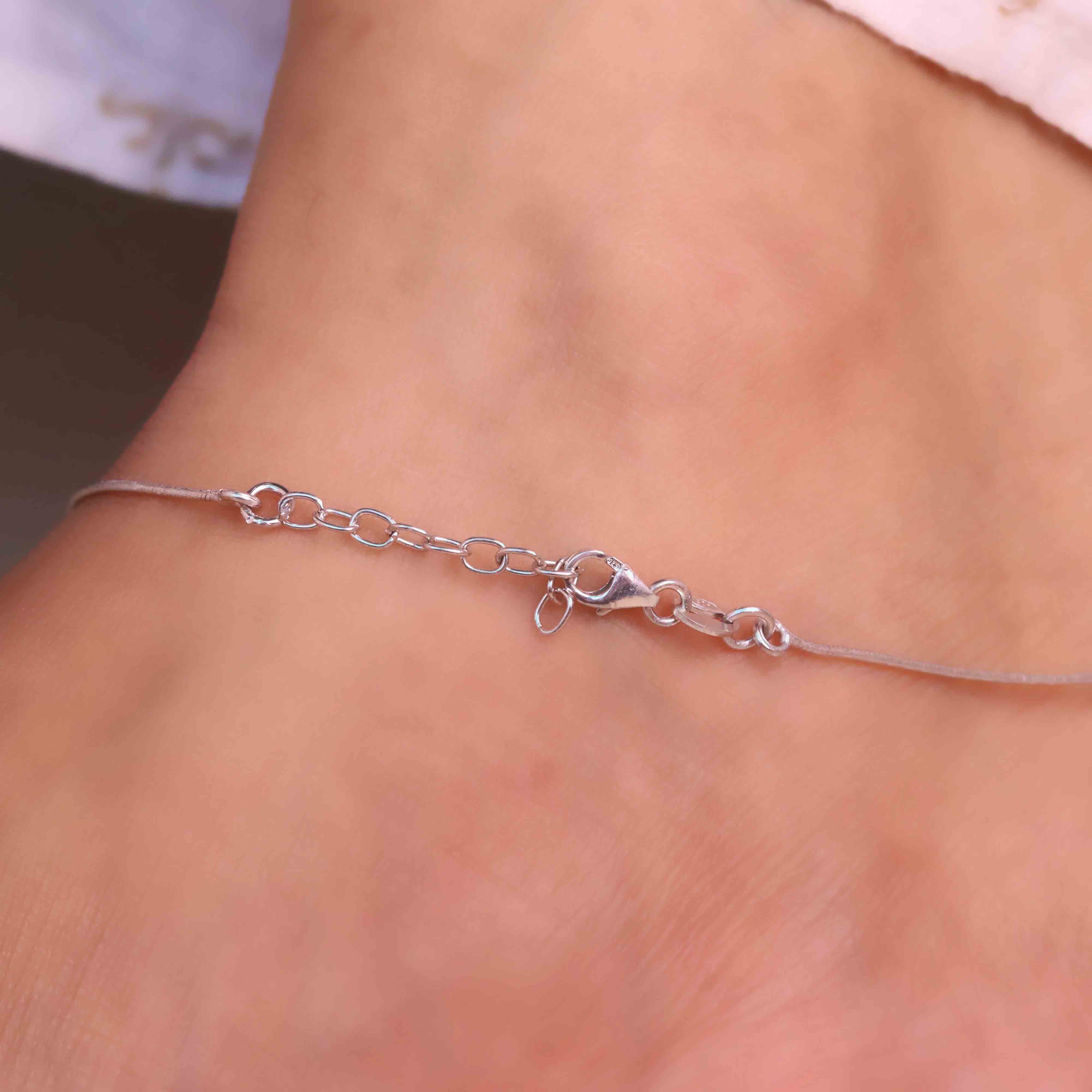 Step into understated luxury with DIA CHARMS ® pure silver Anklet collection – designed to move with you, shine for you, and stay with you.