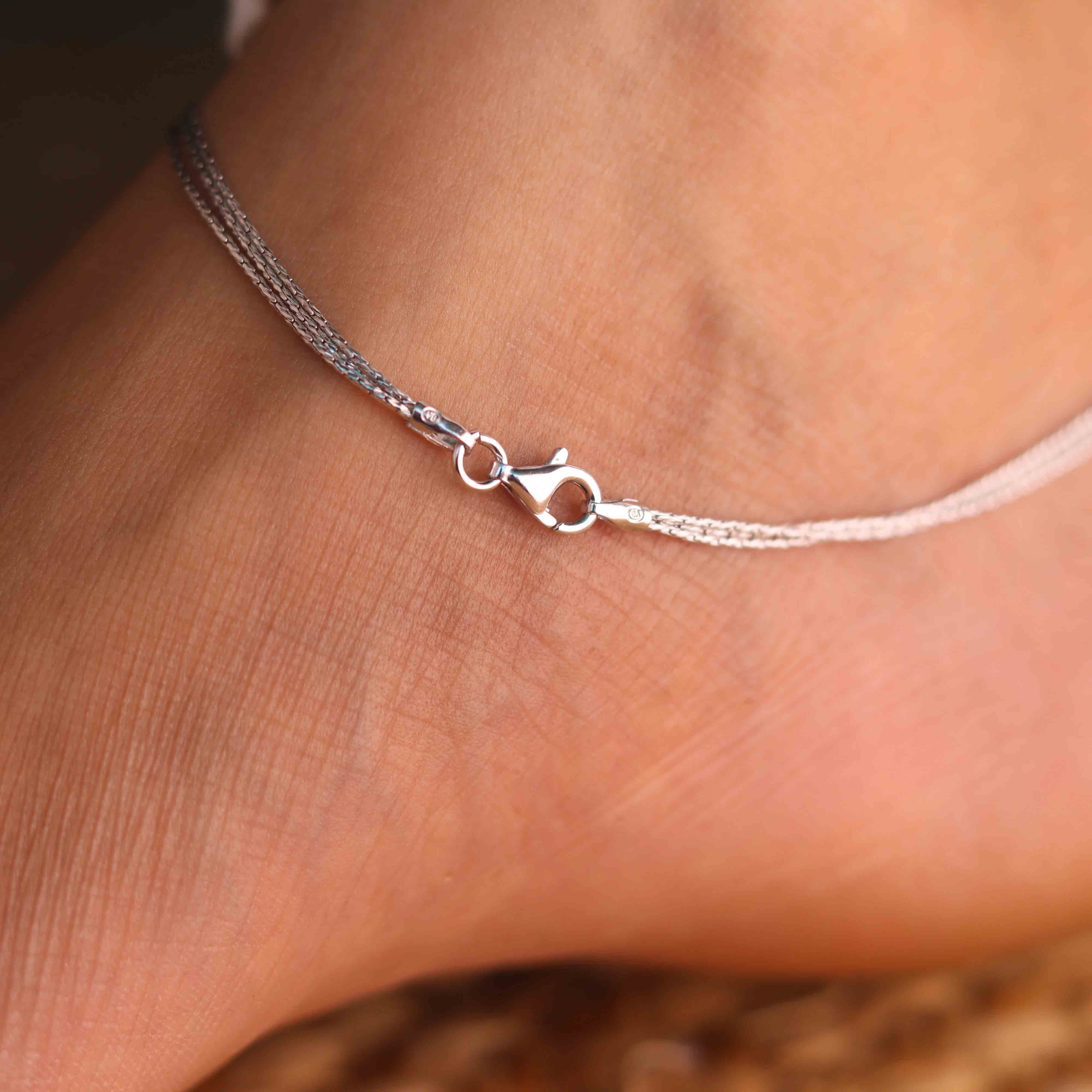 Step into understated luxury with DIA CHARMS ® pure silver Anklet collection – designed to move with you, shine for you, and stay with you.