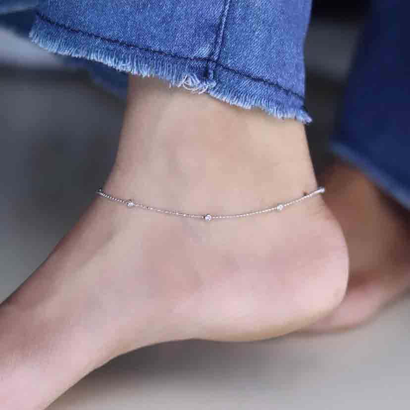 Step into understated luxury with DIA CHARMS ® pure silver Anklet collection – designed to move with you, shine for you, and stay with you.