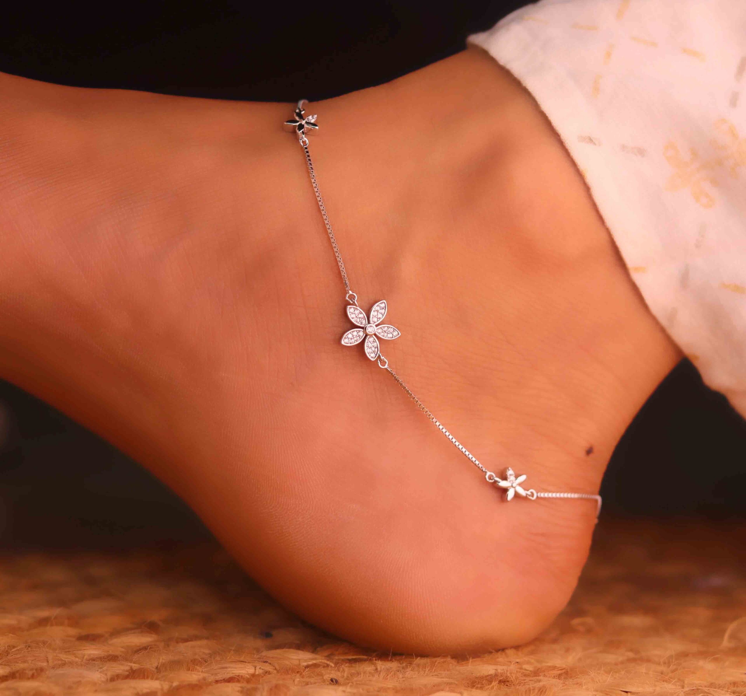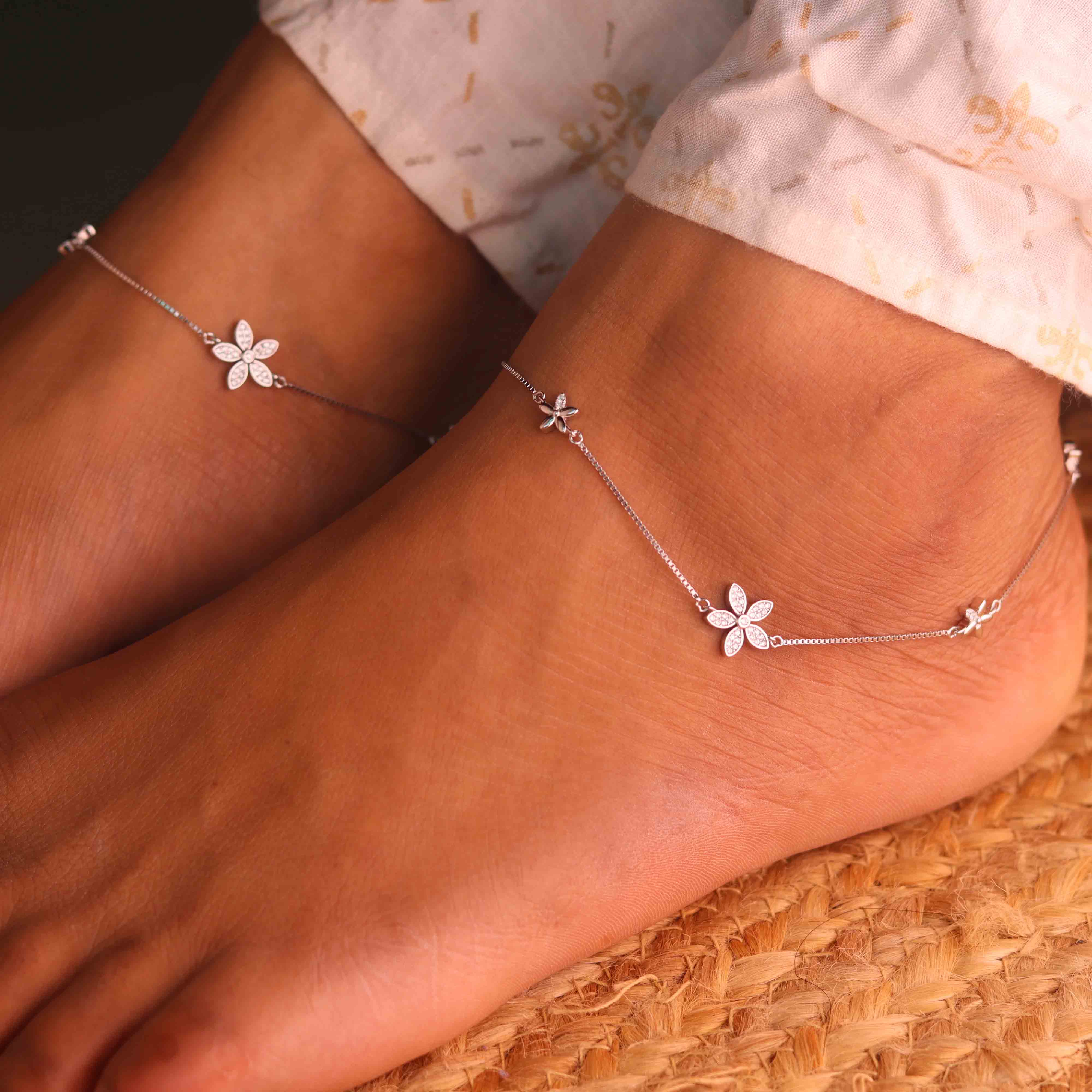 🌸 Elegant 925 Silver Anklet Set by DIA CHARMS ®
