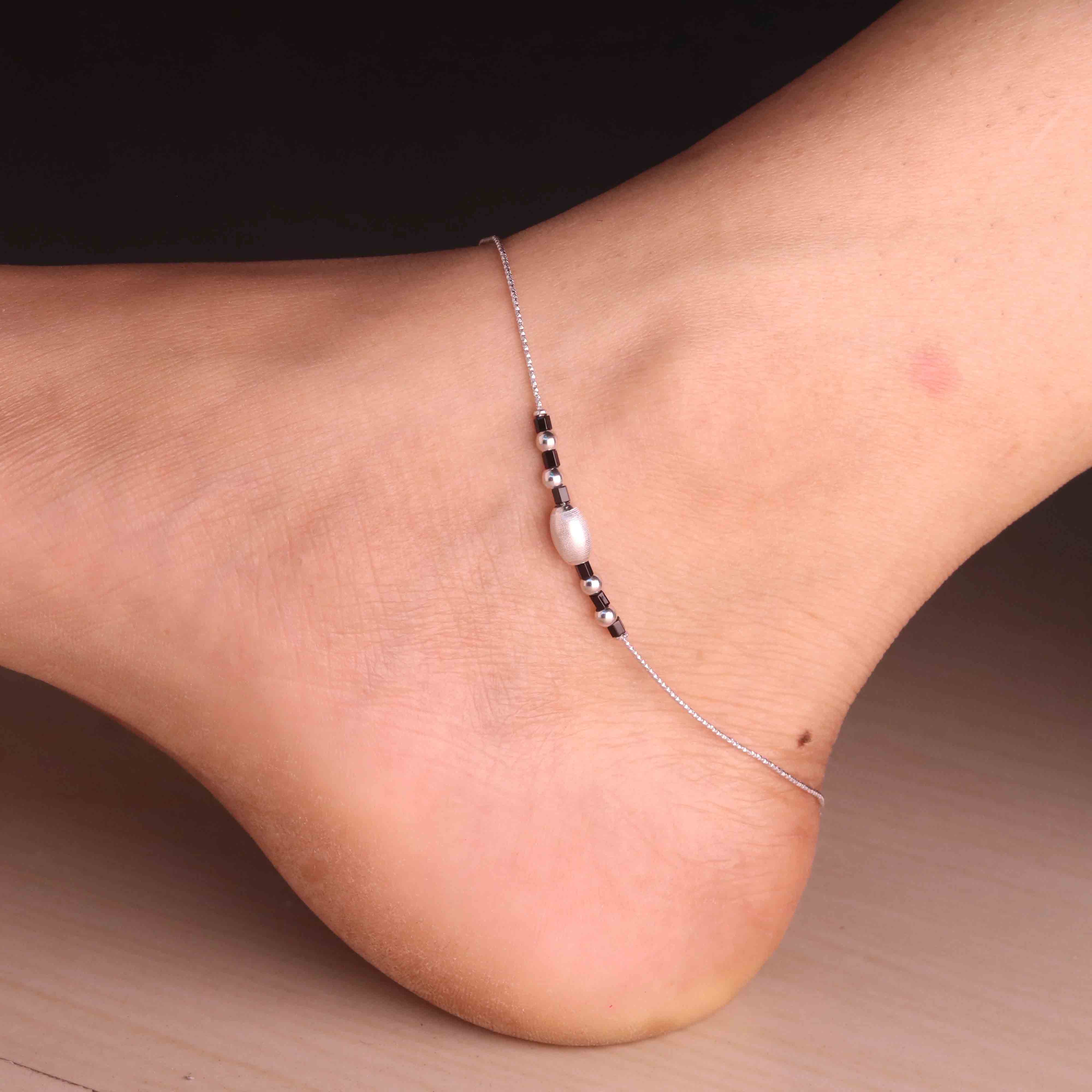 Chic Silver Payal with Beads for Women