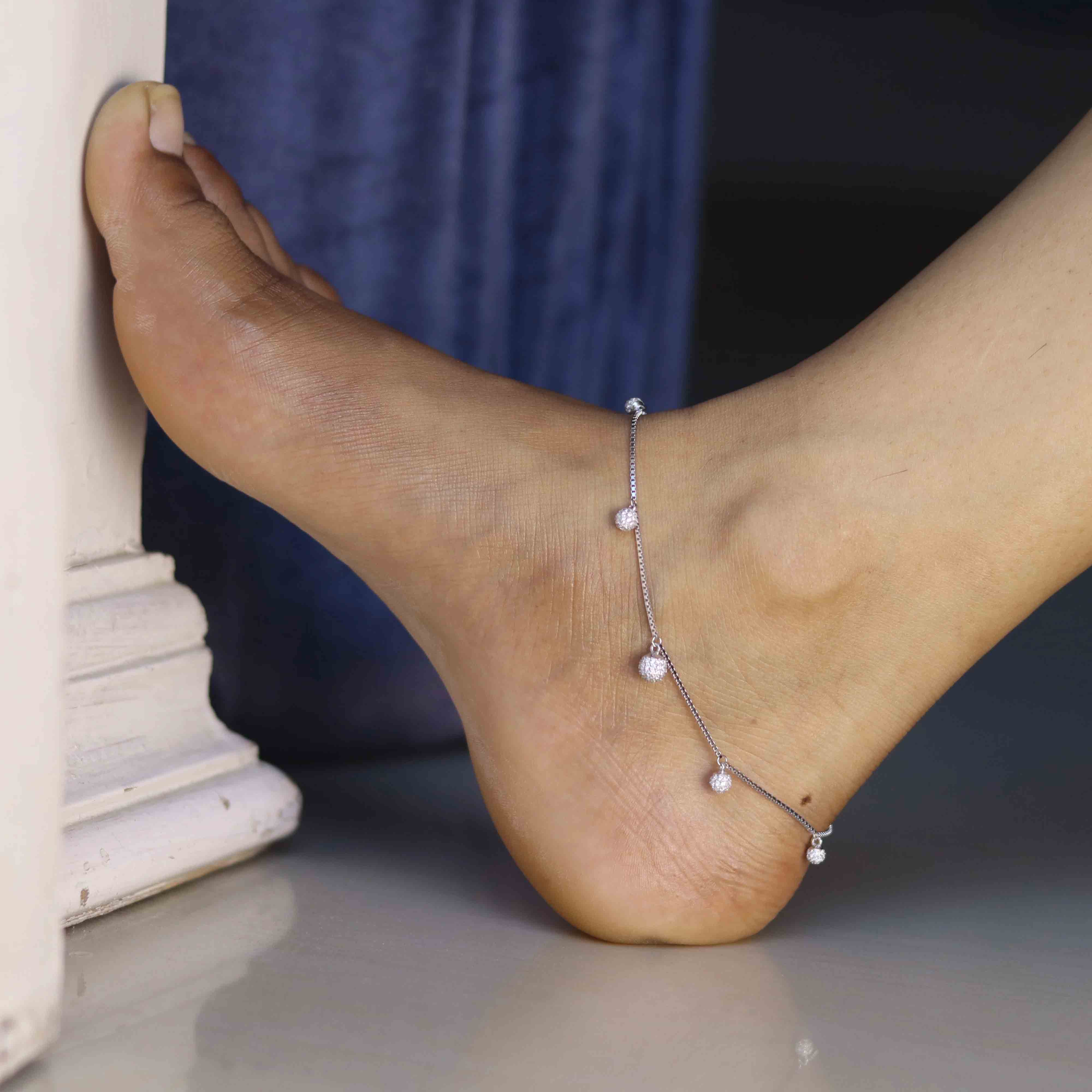 Step into understated luxury with DIA CHARMS ® pure silver Anklet collection – designed to move with you, shine for you, and stay with you.